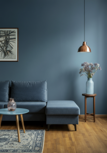 Auch Blautöne prägen 2026 die Raumgestaltung: von tiefem Indigo über sanftes Petrol bis zu hellem Nebelblau. Als Wandfarbe schaffen sie Entschleunigung, Tiefe und ein ruhiges, naturnahes Wohnambiente – für Räume, in denen man sich langfristig wohlfühlt.