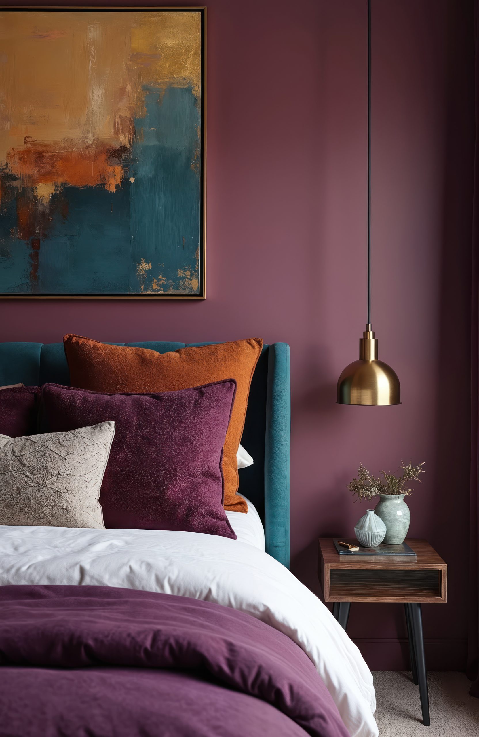 Pflaume und Burgund eignen sich ideal für Wohn- und Essbereiche, in denen Atmosphäre und Tiefe gefragt sind. Im Schlafzimmer entfalten sie – gezielt und dosiert eingesetzt – eine besonders ruhige, schützende Wirkung. Als Akzentwand oder in Kombination mit soften Textilien schaffen sie Geborgenheit und eine sinnliche, entspannte Stimmung, die den Raum zur Rückzugszone macht. Warme Gelb- und Orangennuancen bringen Licht und Energie in Flure, Küchen oder Arbeitsbereiche.